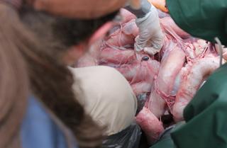 Dissecting tools were gathered from the people around the facilities, and the necropsy began at 9:30am.